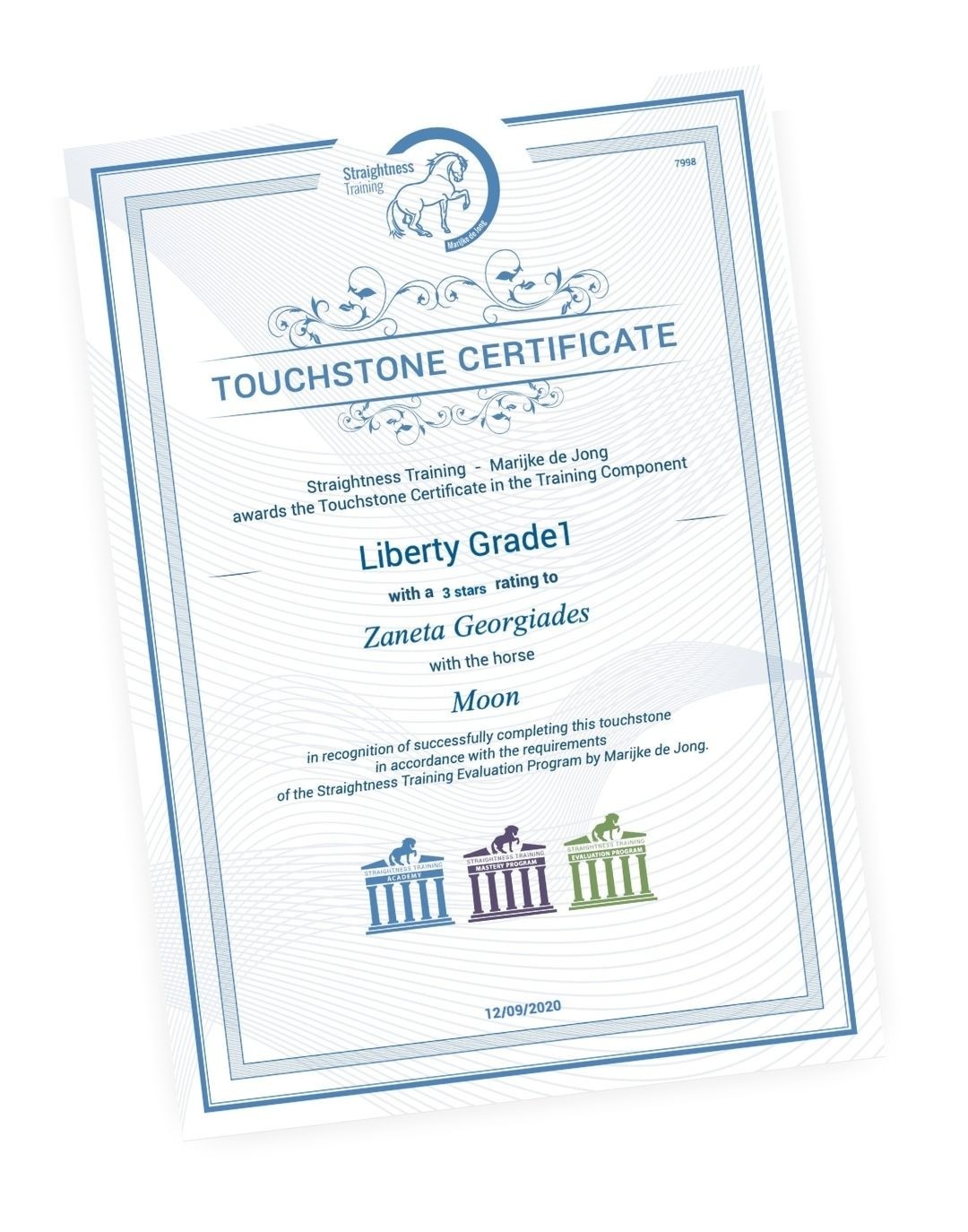 You can get a Touchstone certificate in the training pillars of groundwork, longeing, work in hand, riding and liberty on the levels of grade 1, 2, 3, 4 and 5. In total, you can get 25 Touchstones certificates.
